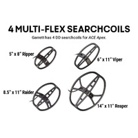 *Note: As a result of the Multi-Flex coil technology, the Apex Viper coil is not compatible with older ACE detectors. Prior ACE coils are not compatible with an Apex detector.