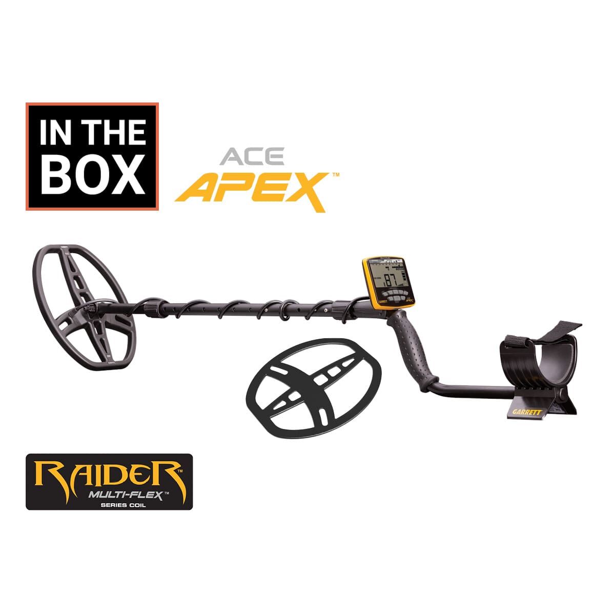 THE GARRETT ACE APEX Detector with APEX 8.5"x 11" RAIDER Multi-Flex DD Searchcoil & coil cover